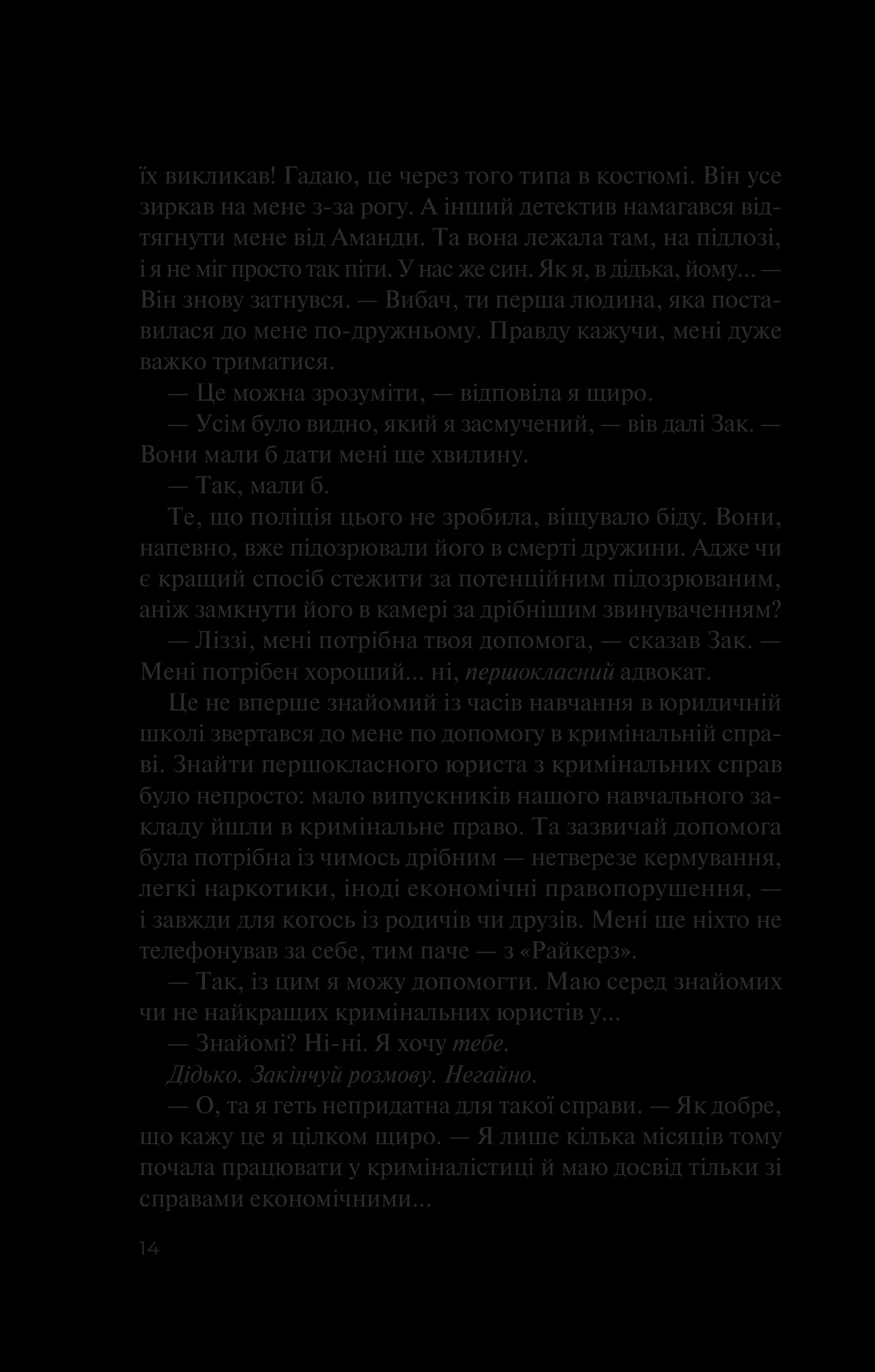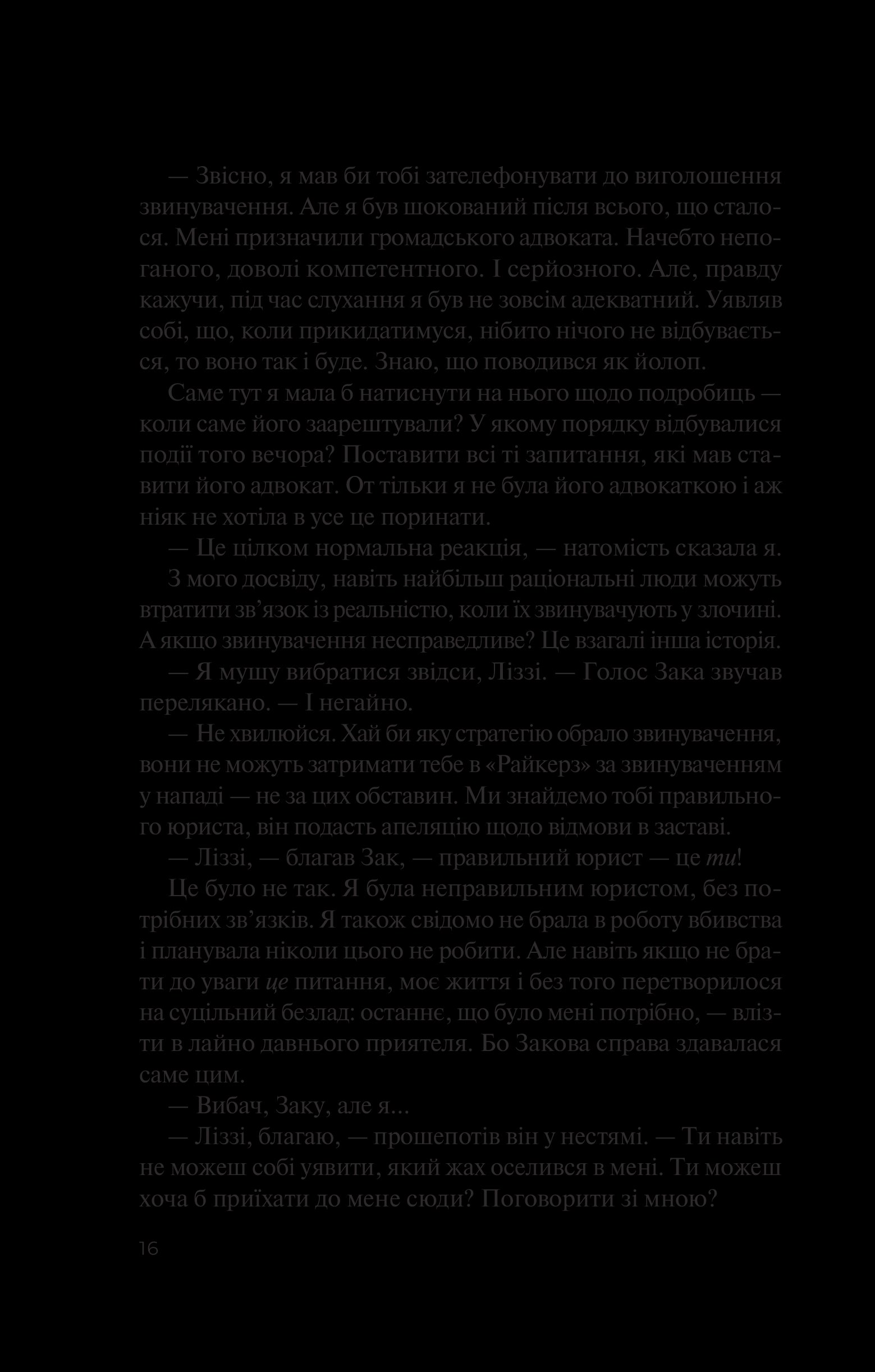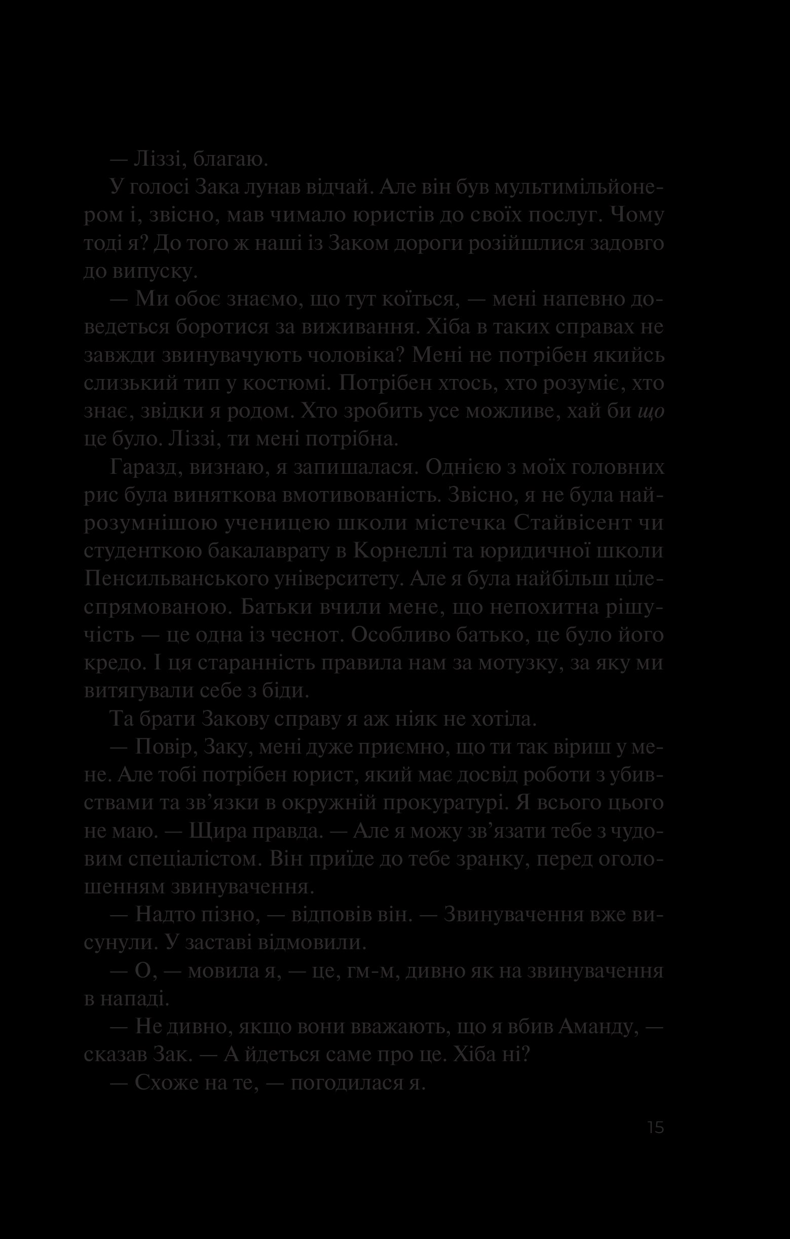 Ліззі починає діяти. Але розслідування зіштовхує її з несподіваною правдою. Зак та Аманда зовсім не були тими, за кого себе видавали. Їхні друзі — тісне коло батьків з елітної школи Brooklyn Country Day — також непростий народ, який може приховувати безліч небезпечних таємниць. Чи змусить героїв зруйнована ілюзія стабільності переосмислити свої вчинки?