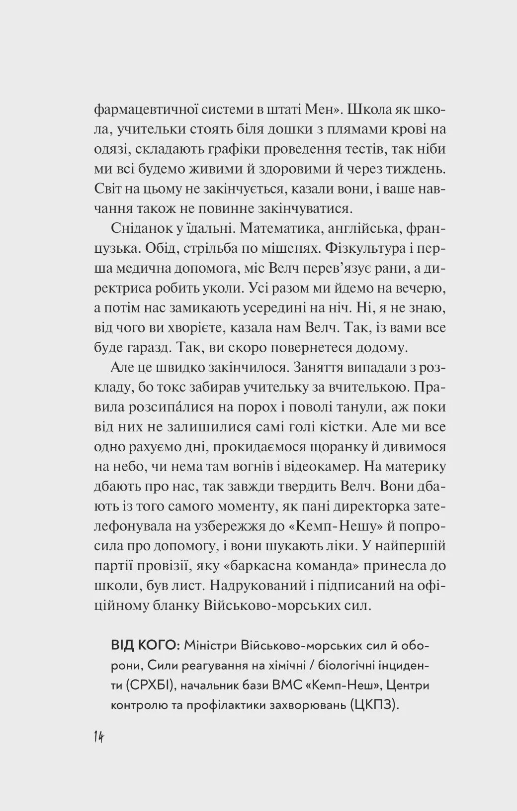 Спочатку адміністрація школи ігнорувала факт, що частина дівчат захворіла. Учительки вважали це звичайною інфекцією, тому уроки продовжувалися. Перші місяці після спалаху «токсу» наставниці вперто проводили заняття, хоча їхній одяг вже просочували багряні плями крові. Жінки порушували теми масових епідемій в історіях різних цивілізацій, а для Гетті це було нісенітницею — ніби урок про захворювання здатен зупинити чисельні смерті.