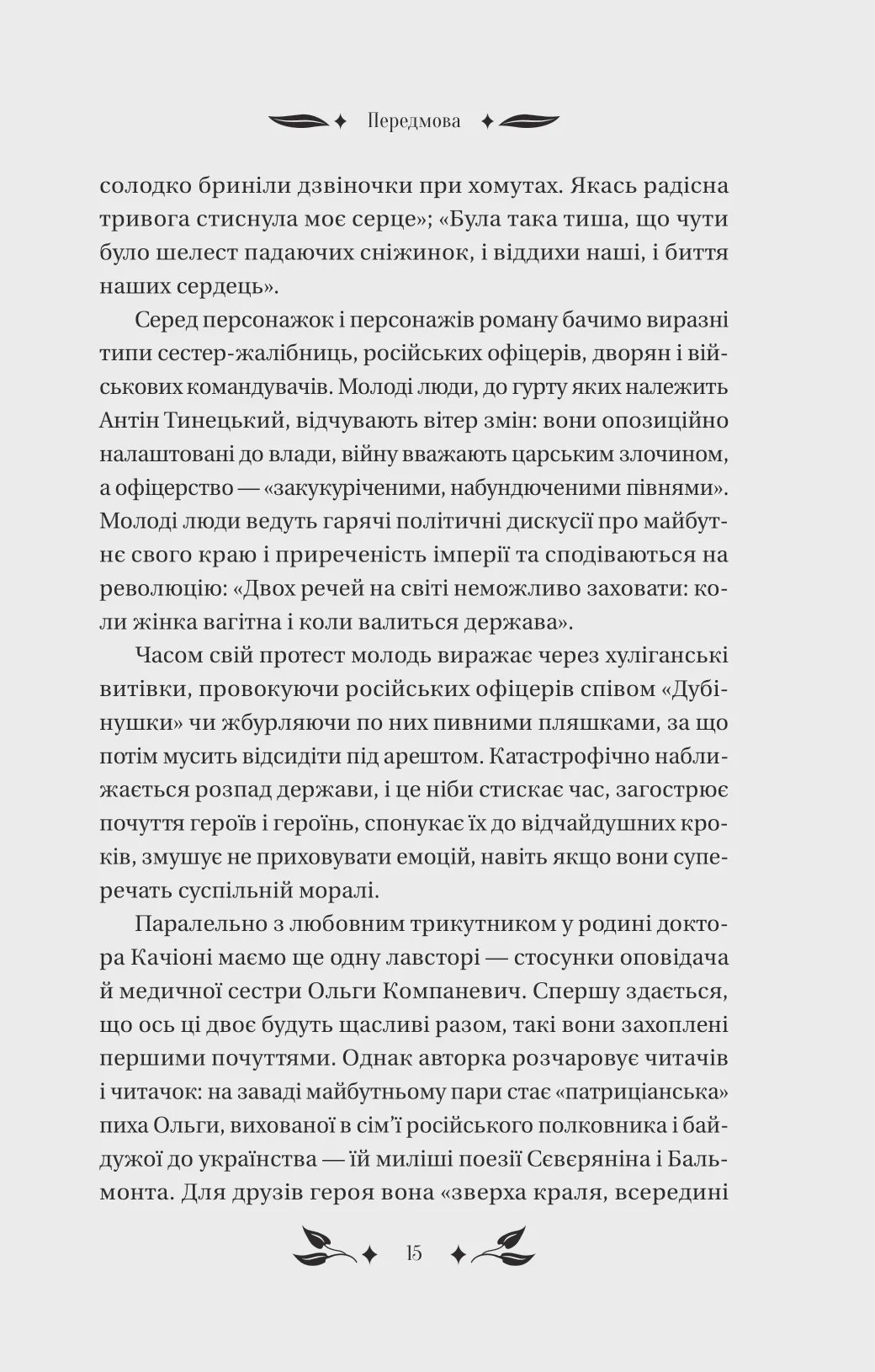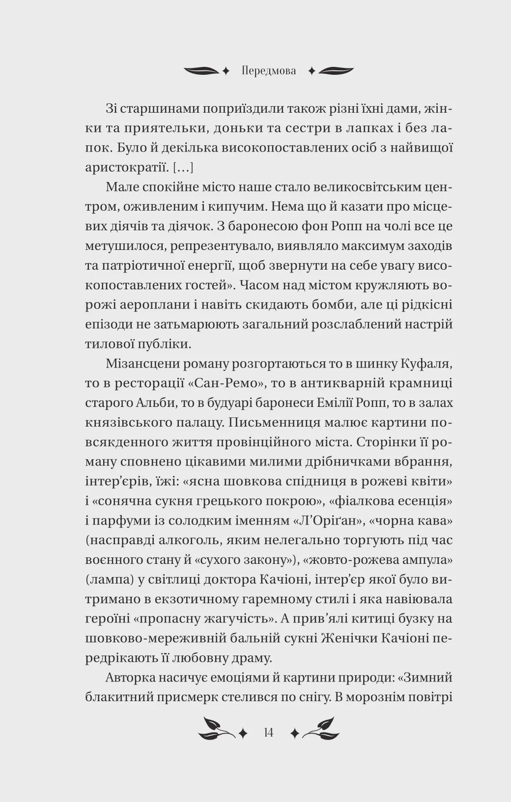 З тонким психологізмом, залюбленістю в деталях і драматичною глибиною людських доль авторка малює історію, у якій головні ролі належать надзвичайно колоритним постатям.