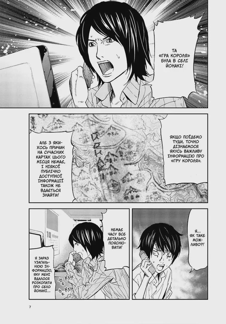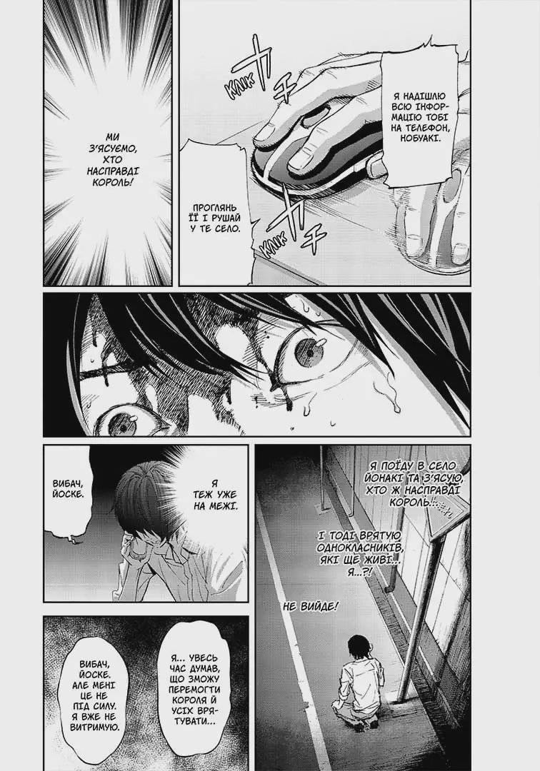 Та Йосуке знаходить інформацію, яка може круто змінити хід гри. Виявляється, було колись село Йонарі, яке одного дня стало ареною для Гри короля. Тепер його навіть немає на карті… Що це означає для Нобуакі та його друзів?