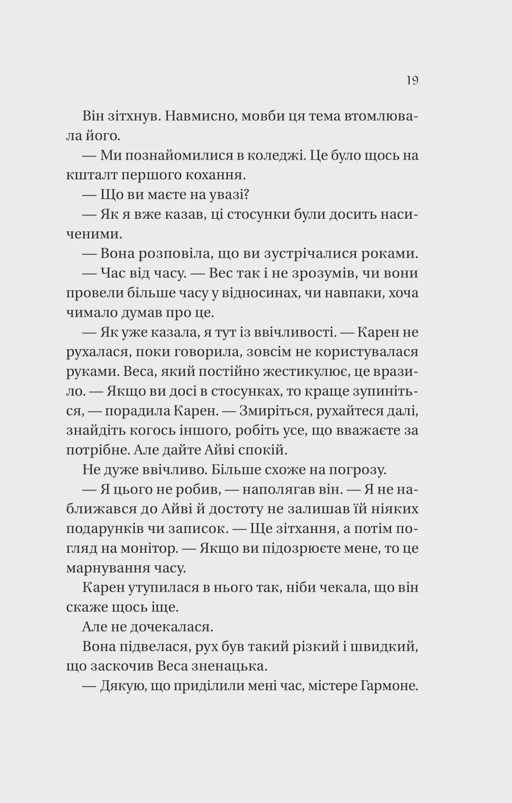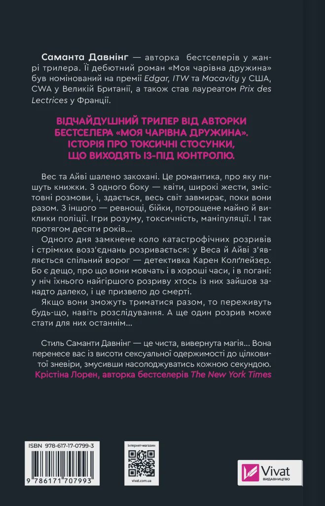 Айві та Вес познайомилися в коледжі й втрапили у пастку солодких, але токсичних стосунків із карколомними емоційними гойдалками. Безліч разів вони намагалися припинити все, розходилися, але знову потрапляли до обіймів одне одного. І якби ж від цього страждали тільки вони: раніше усе обмежувалося травмами, псуванням майна, а також судовими позовами. Поки одна з їхніх чергових сварок не закінчилася смертю людини…