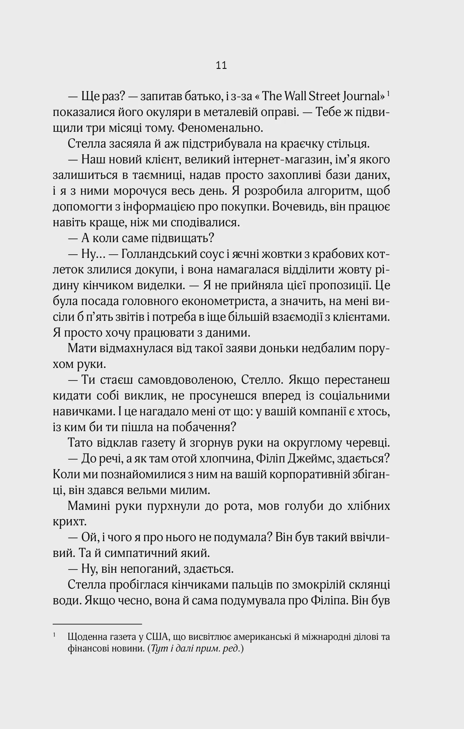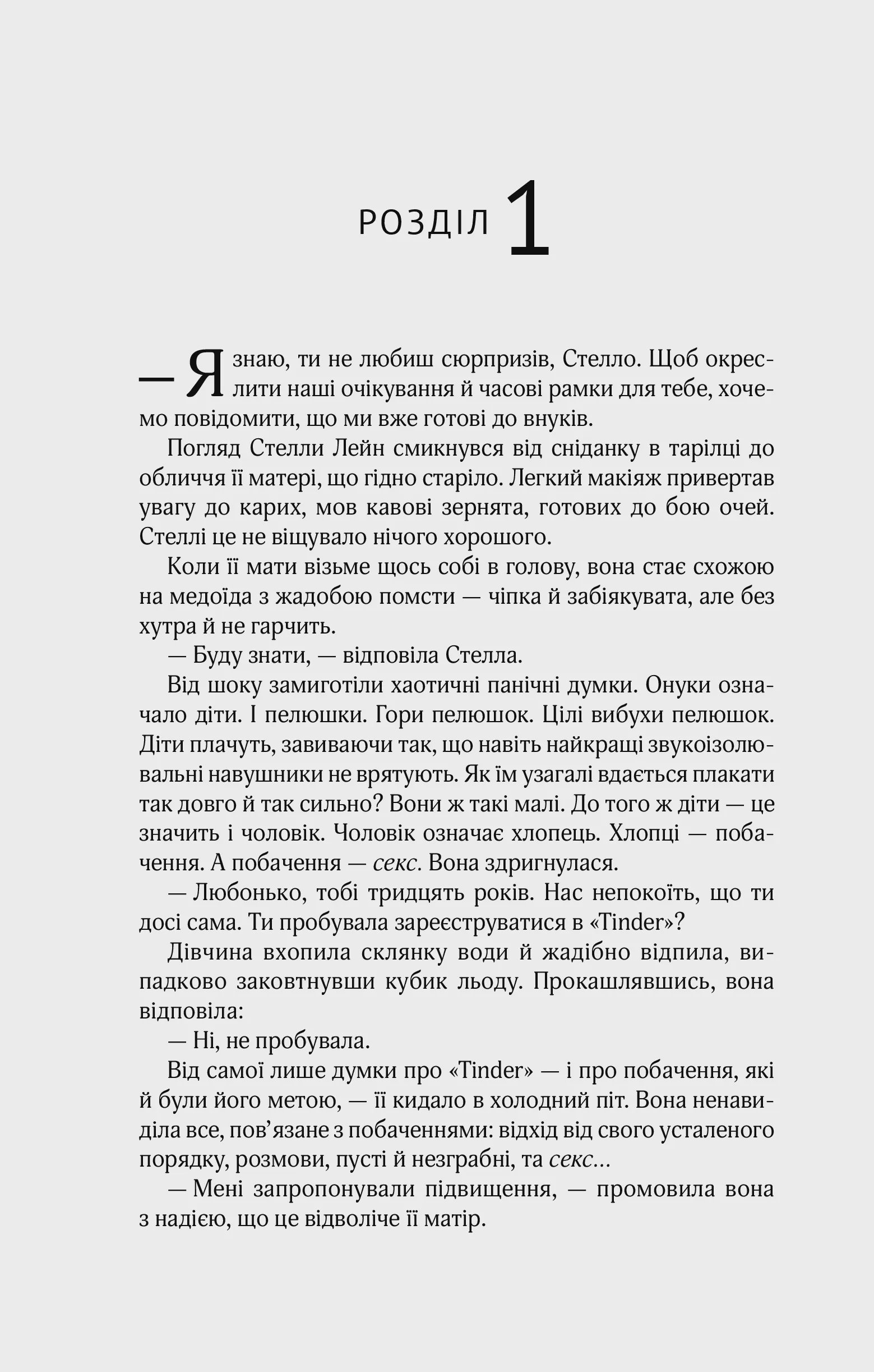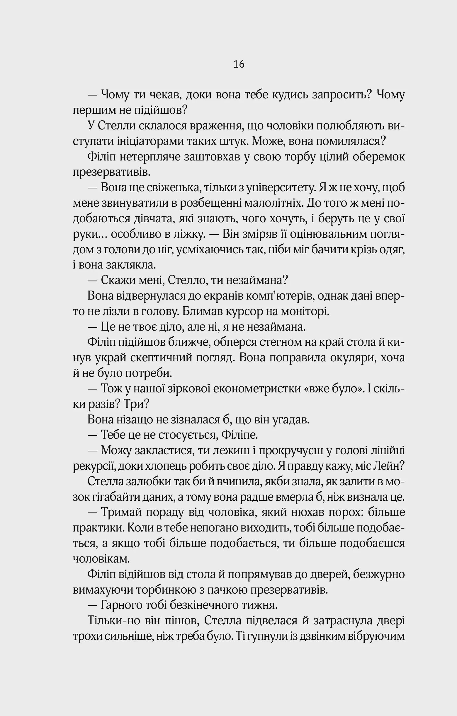 Стелла Лейн має все, до чого прагне сучасна жінка у тридцять років — вона незалежна, успішна, забезпечена і вродлива. От тільки особисті стосунки не склалися. На заваді стоїть не так розлад аутистичного спектра, як переконання, що головне в житті — це цариця наук Математика. І тільки вона об’єднує все живе. А кохання та сексуальність — це рівняння з усіма невідомими, яке вона геть не прагнула розв’язувати… Аж донедавна.
