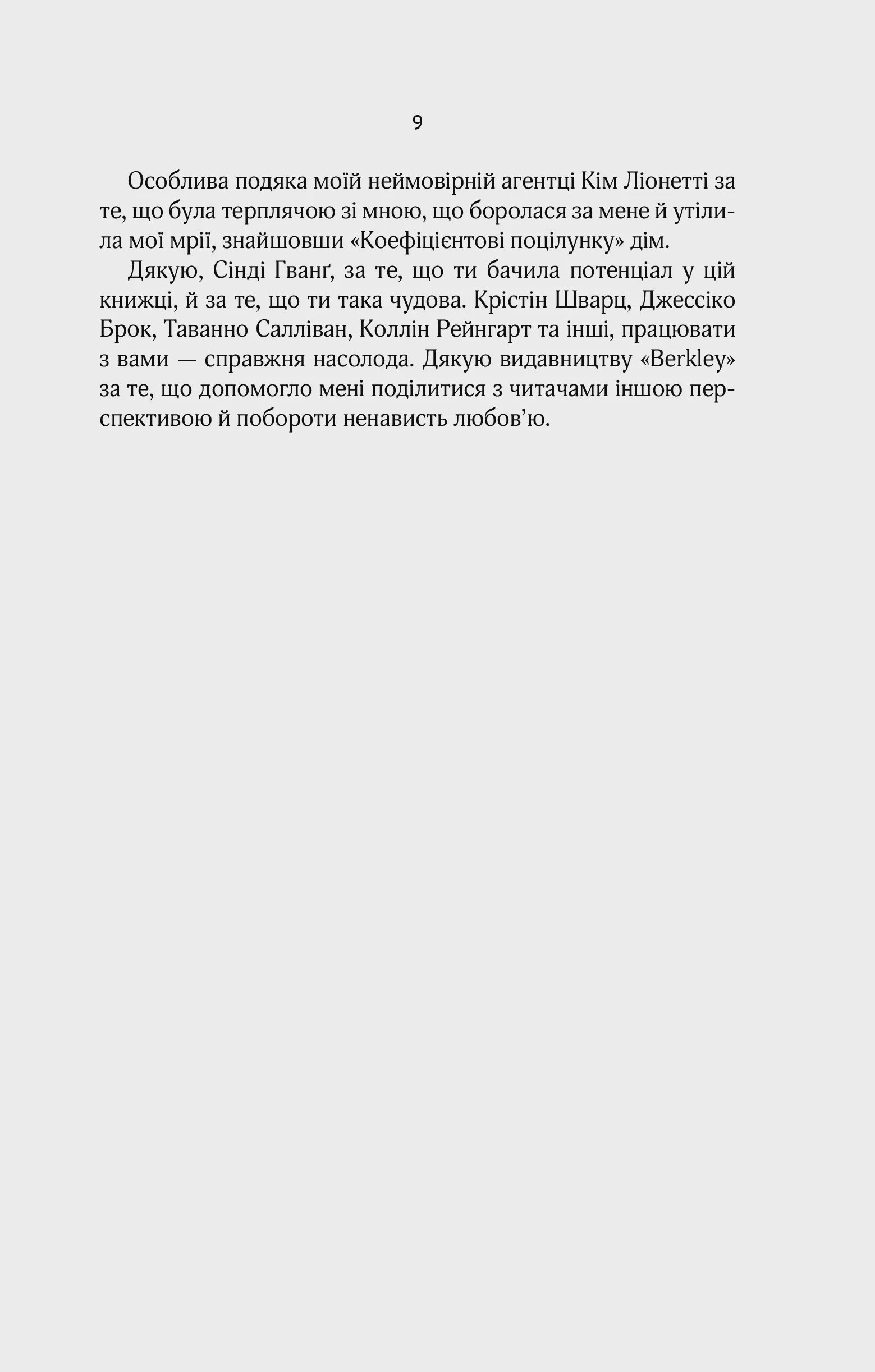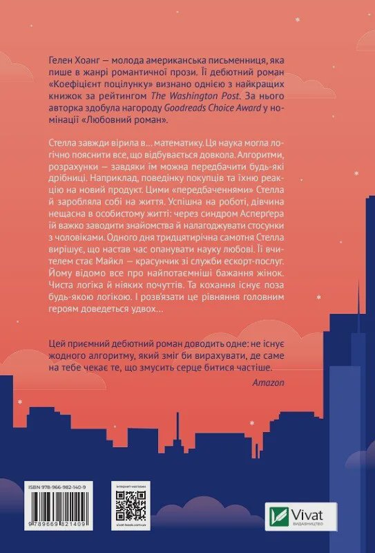 Книга «Коефіцієнт поцілунку» Гелен Хоанг — це двобій любові та логіки з перших сторінок, що розважить і заворожить читача. New Adult книга була дебютною для американської письменниці, однак швидко стала бестселером у США, а після того й в усьому світі.