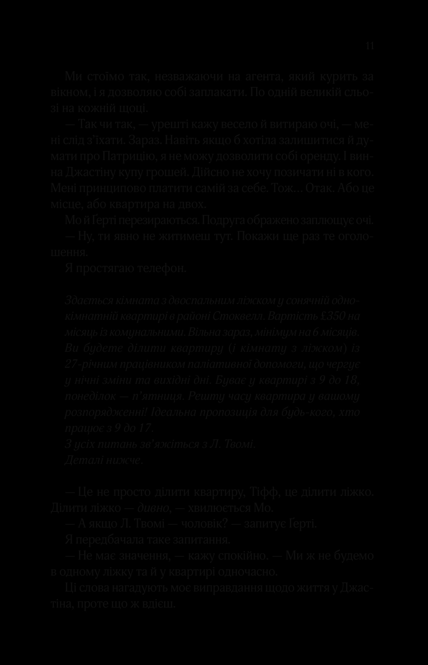 Книга створена для поціновувачів нетривіальної slowburn-романтики, глибокого занурення у внутрішній світ героїв та контемпорарі-роману з гумором. Легка і ніжна історія нагадає про те, що розбудова близькості можлива і без фізичної взаємодії.