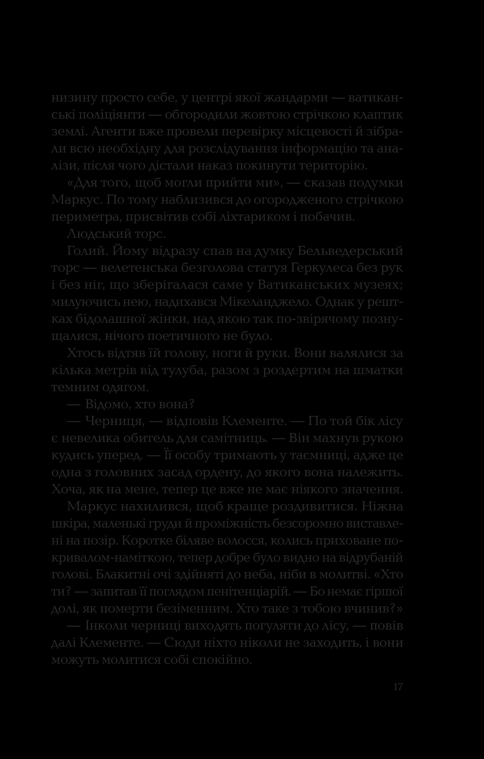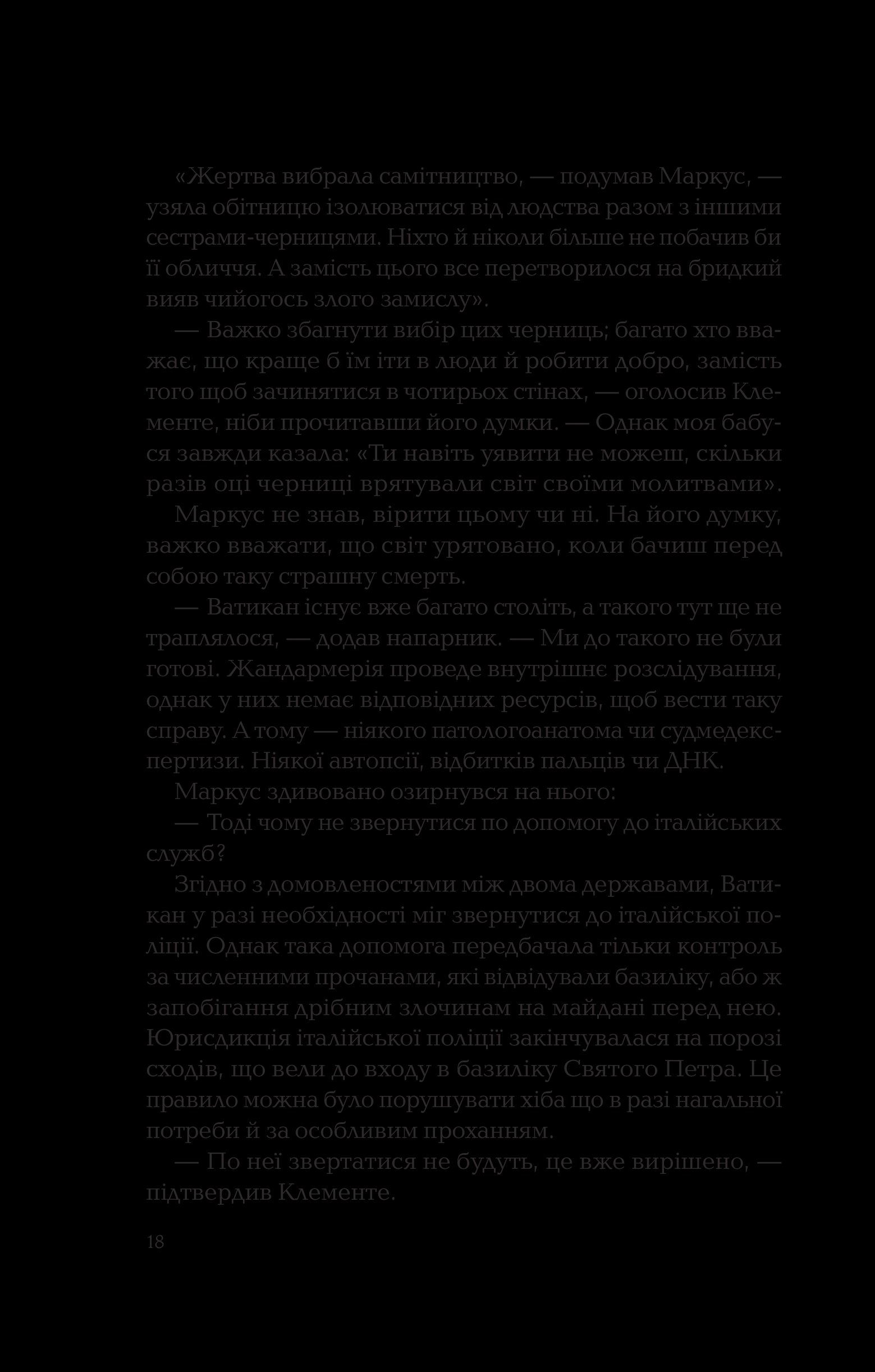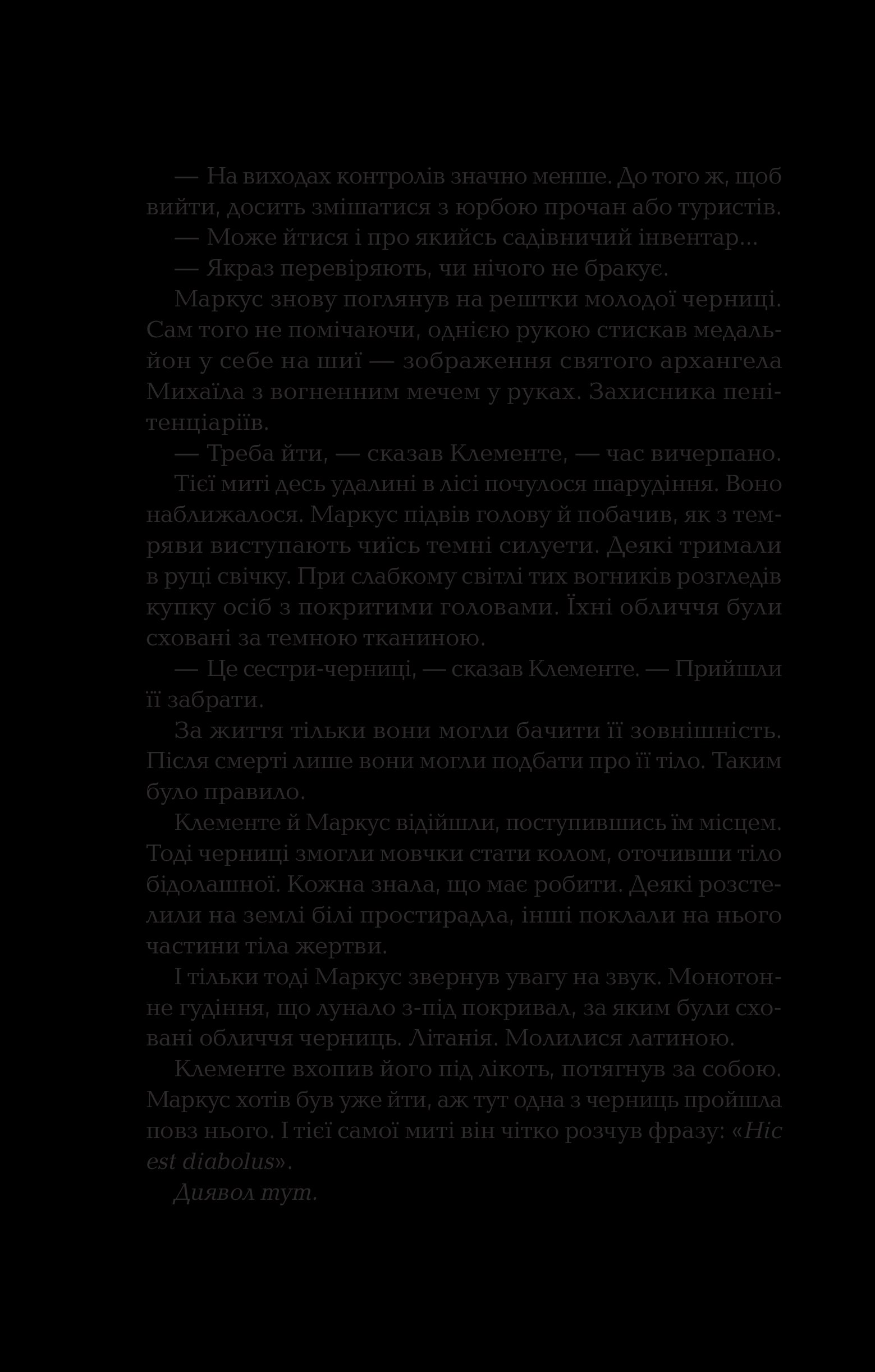 У романі відчувається тісне переплетення церкви, криміналу і поліції, а також містики й опису внутрішніх переживань, розкриті теми самогубства та садизму, розмірковування над дихотомією добра та зла. У цій книзі дуже і дуже багато жорстокості та тригерних моментів, тому вона не рекомендована до прочитання чутливим особам та людям, молодшим 18 років. Водночас Донато Каррізі пише кінематографічно та естетично, приділяючи багато уваги описам локацій, характерам та мотивам персонажів, тож у книзі порівну зла і краси. Якісний інтелектуальний трилер, з яким треба бути обережно у транспорті — він може стати причиною того, що ви пропустите власну зупинку.