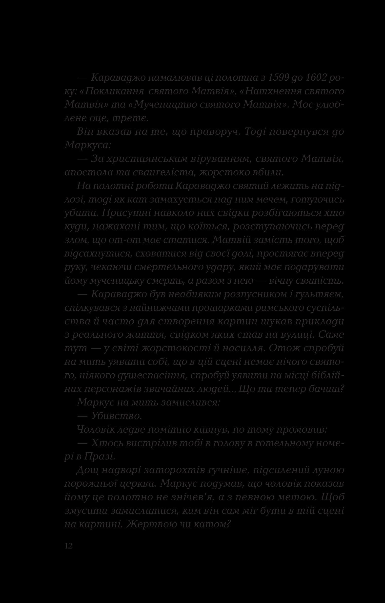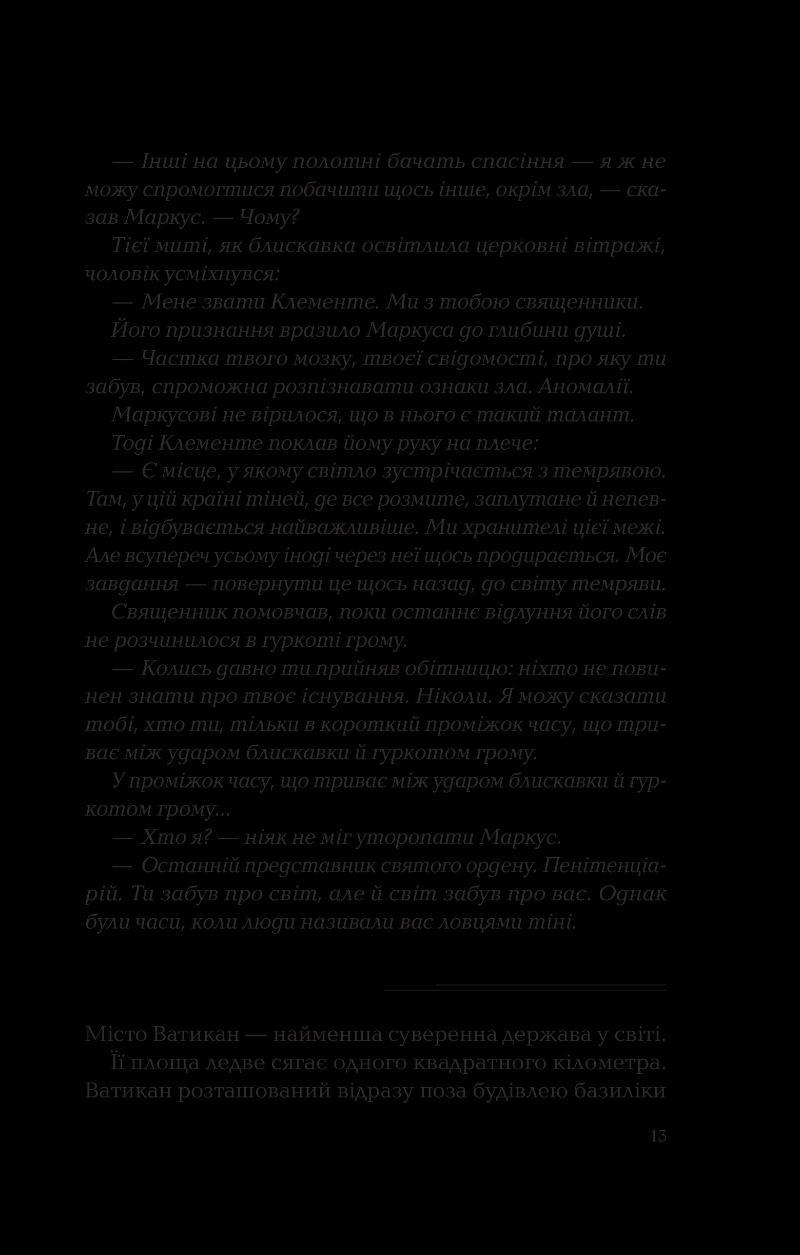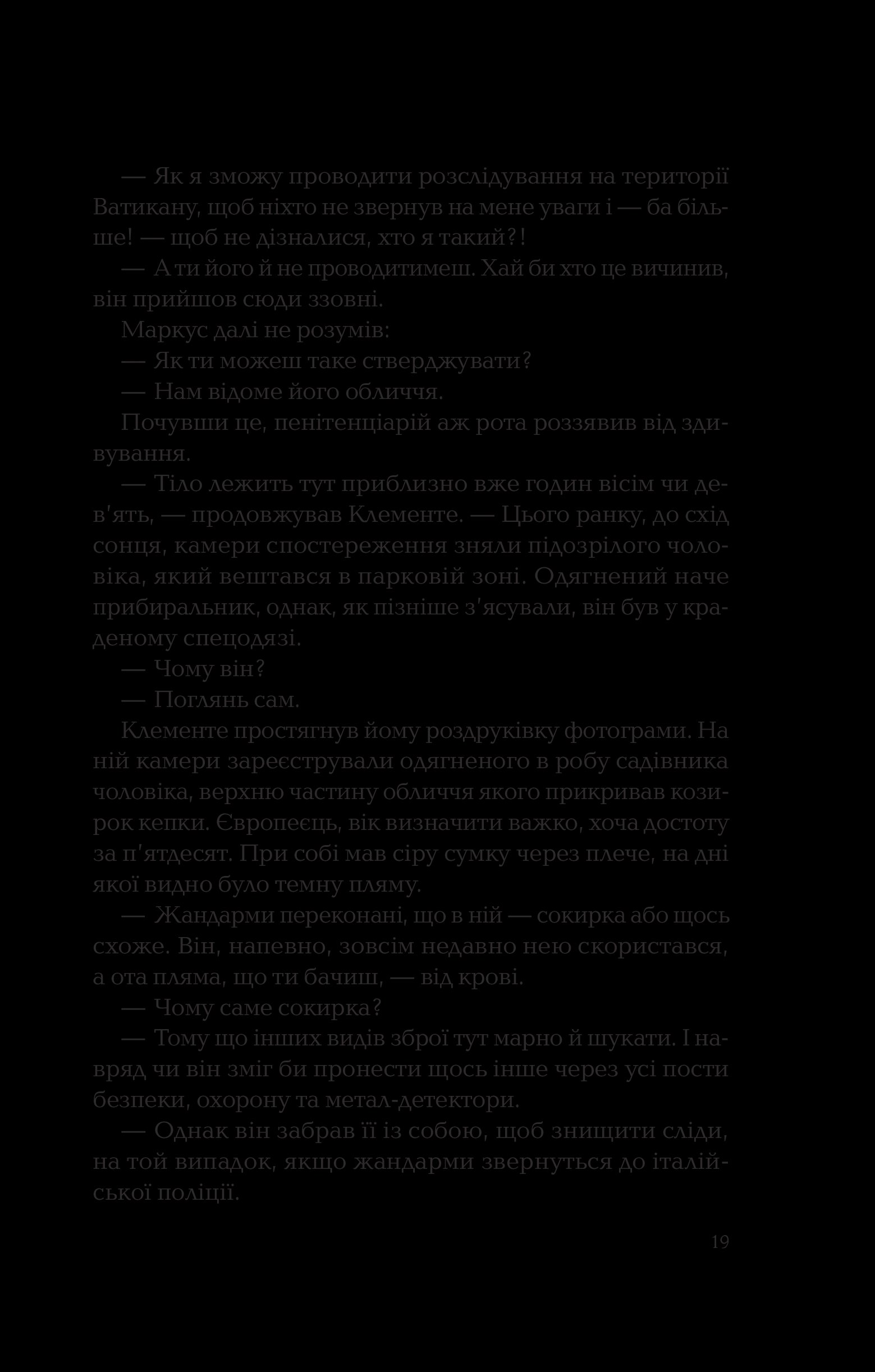 У романі відчувається тісне переплетення церкви, криміналу і поліції, а також містики й опису внутрішніх переживань, розкриті теми самогубства та садизму, розмірковування над дихотомією добра та зла. У цій книзі дуже і дуже багато жорстокості та тригерних моментів, тому вона не рекомендована до прочитання чутливим особам та людям, молодшим 18 років. Водночас Донато Каррізі пише кінематографічно та естетично, приділяючи багато уваги описам локацій, характерам та мотивам персонажів, тож у книзі порівну зла і краси. Якісний інтелектуальний трилер, з яким треба бути обережно у транспорті — він може стати причиною того, що ви пропустите власну зупинку.