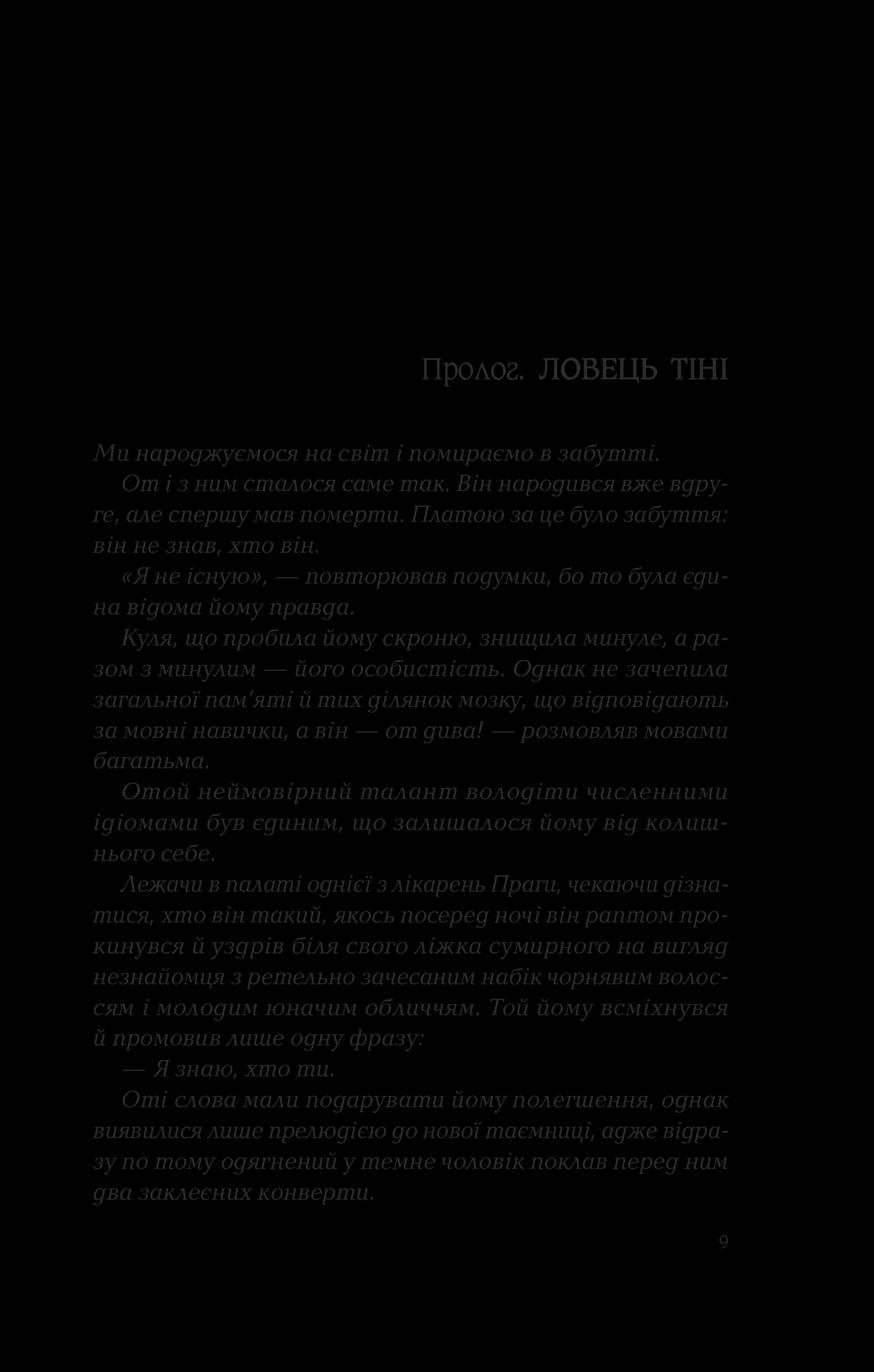 До розслідування знову беруться пенітенціарій із майже зниклого ордену, детектив Маркус, який має дар бачити слід нечисті у злочині, та поліційна фотографка Сандра, яка бачить смерть кожен день, але з таким жахом ще не зустрічалася. Разом Маркус та Сандра ідуть по сліду чудовиська, щоб викрити його особу. Адже цей нелюд діє так, що є сумнів у його людській природі. Можливо, це взагалі потойбічна сутність? «Ловець невинних душ. Книга 2. Ловець тіні» розкриє цю таємницю для вас.