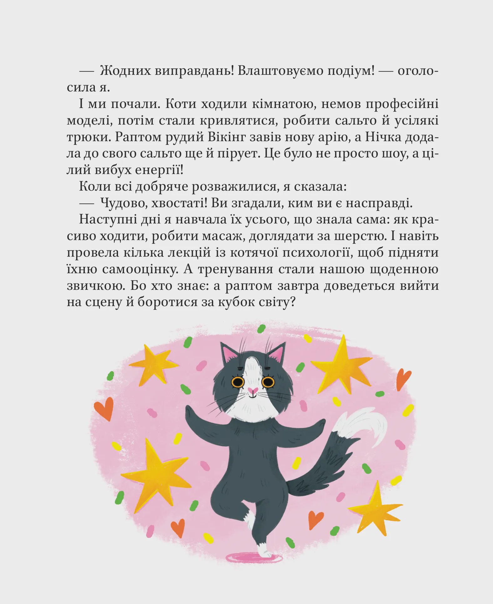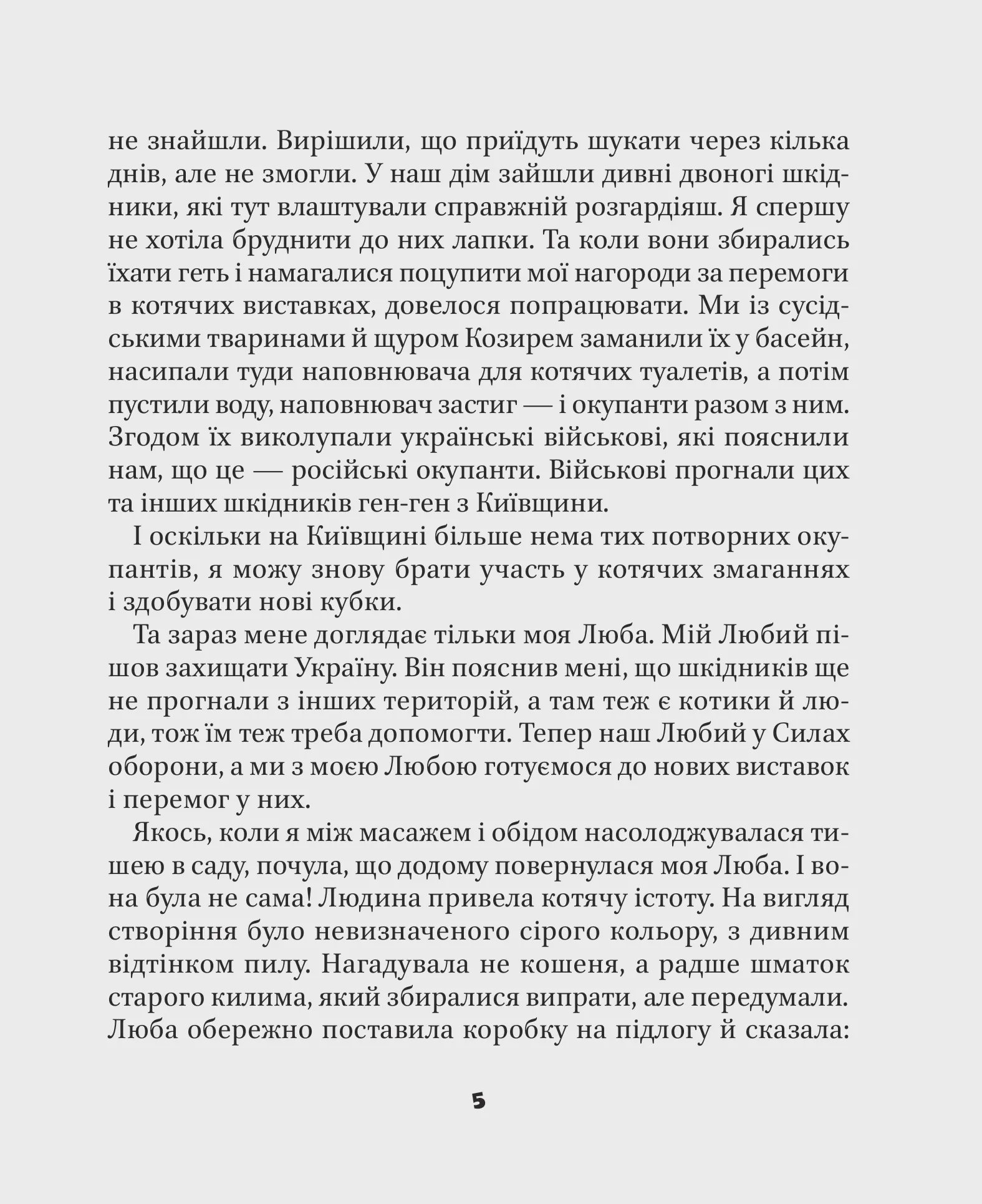 Головні герої оповідок — чотирилапі пухнастики, але вони теж українці! У країні, де мужність, відвагу та взаємодопомогу виявляють навіть котики, в темряви немає жодного шансу реалізувати свої підступні, загарбницькі плани. Кожна історія про улюбленців містить щедру порцію тепла, сміху та віри у добро. Короткі розповіді покликані пояснити читачам, що відбувається у світі, але з опорою на гумор, співпереживання, взаємодопомогу й надію. Ця книга вчить знаходити простір для фантазії, гри та веселощів, дарує емоційну підтримку й слугує антистресом.