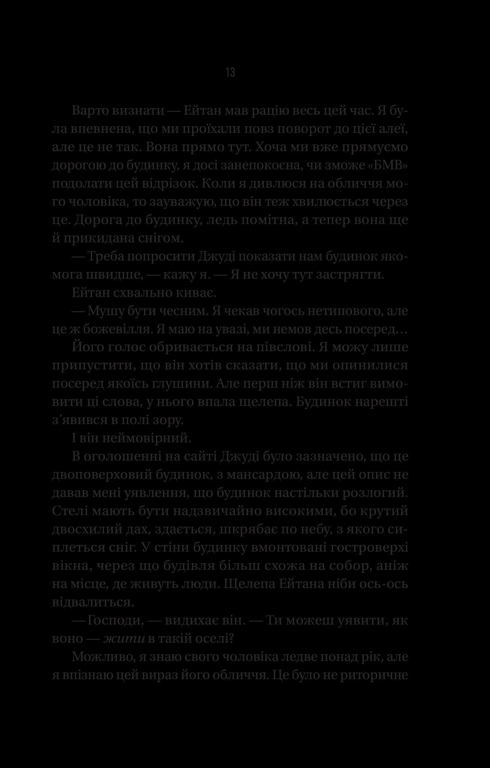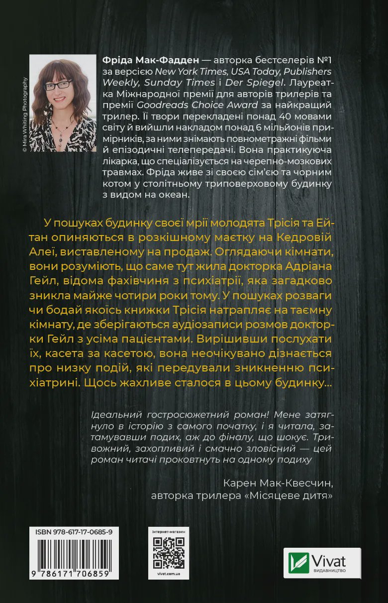 Фріда Мак-Фадден майстерно грає з очікуваннями читачів: спочатку робить розгадку нібито очевидною, а згодом перевертає наратив, чого аж ніяк не можна було очікувати.