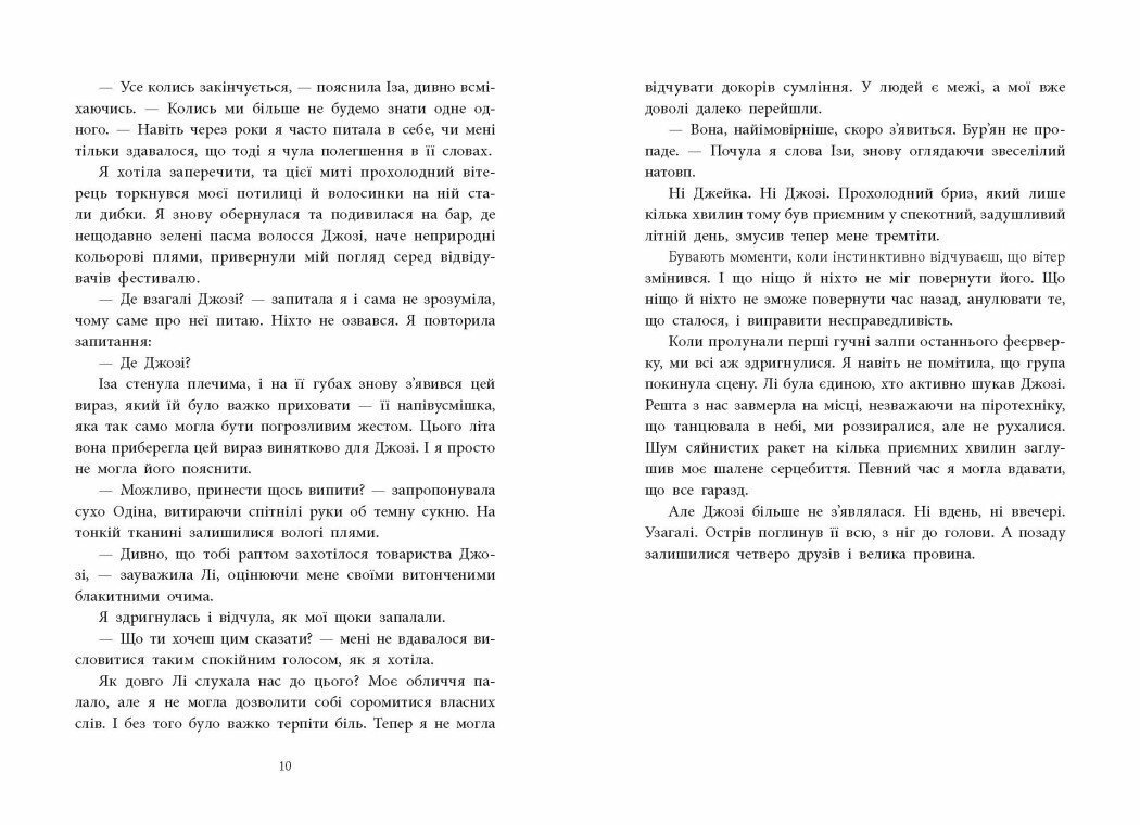 Усе почалося того класного літа, коли вони тільки познайомилися: Ейвері, Ізабелла, Одіна, Лі та Джозі. Серфінг, піца, фільм «Вбивство Тайлера»… Літо було безтурботним і шаленим, доки Джозі раптово не зникла… Розслідування мало що дало. Проте назовні виплили всі конфлікти між подругами й усі таємниці. Що більше дівчата намагалися допомогти поліції, то очевиднішою ставало їхнє власне залучення…