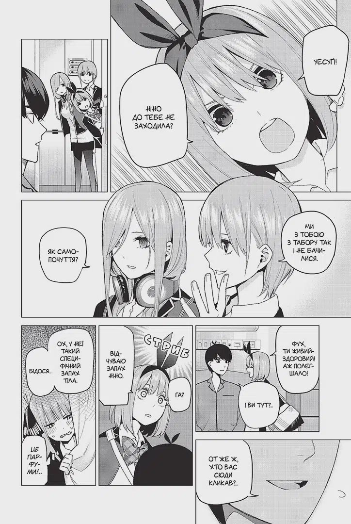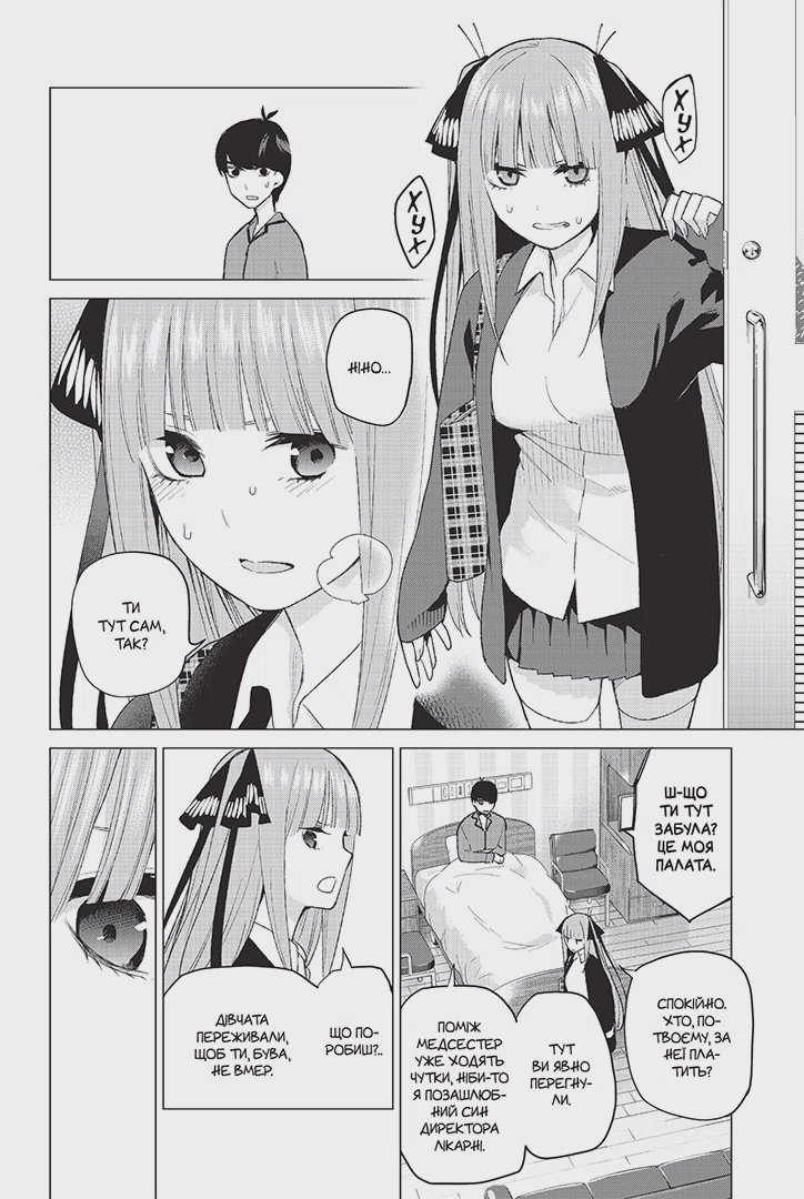Після лісового табору Футаро потрапляє до лікарні. П’ять сестер Накано переймаються його здоров’ям і тихцем навідують свого репетитора. Проте там, де перебувають ці красуні, завжди здіймається якась буча. Розмова з Іцукі ставить Футаро в глухий кут: чому він так відчайдушно вчиться?