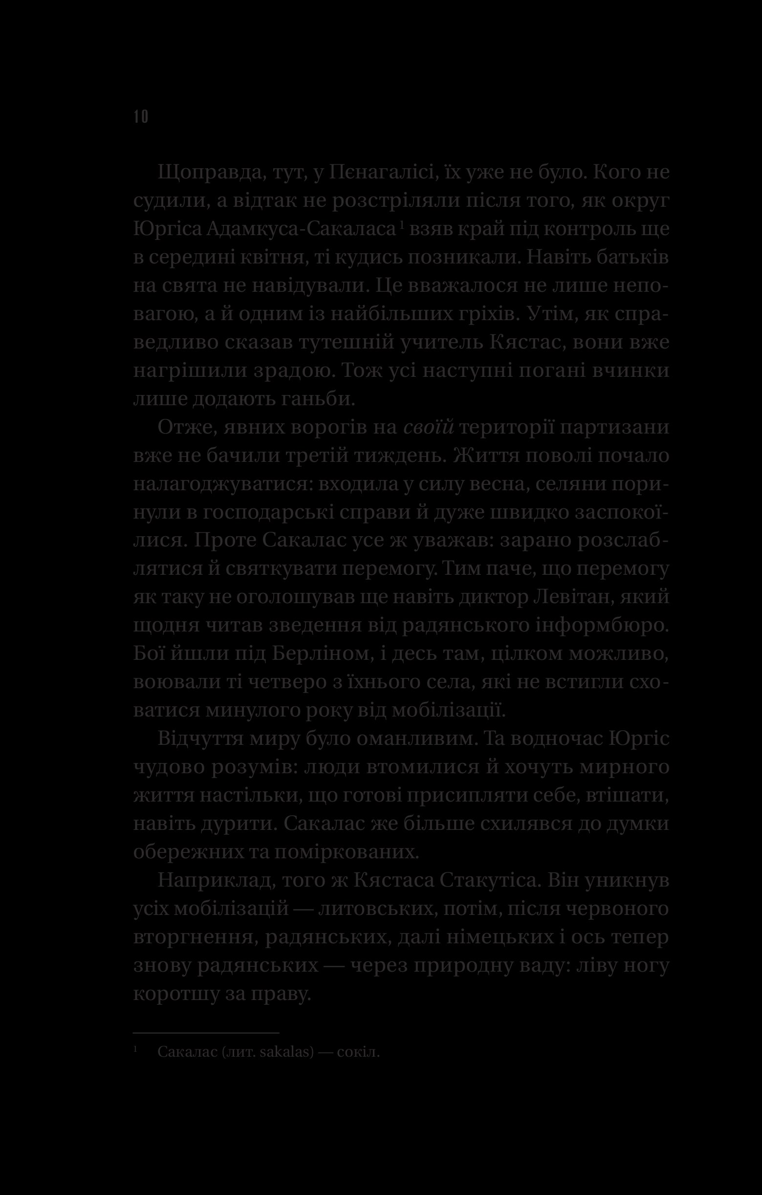 Травень 1945 року, Литва. Завершується Друга світова війна. Однак Сакалас, командир загону литовського збройного опору, переконаний: святкувати перемогу литовцям зарано. Адже з розгромом нацистської Німеччини державну незалежність Литви не відновлено. Територію знову контролює радянська влада. Замість визволення й свободи вона принесла терор, репресії, насильство.