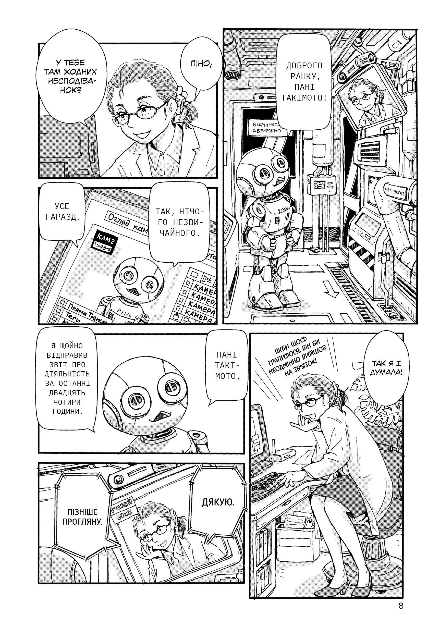 Один із таких роботів працює у фармацевтичній лабораторії — доглядає піддослідних тварин, ставить над ними експерименти… й за потреби позбувається. Цей Піно нічим не відрізняється від інших — увічливий, доброзичливий, ретельний, хірургічно точний… допоки не отримує наказ ліквідувати лабораторію разом з усіма тваринами в ній — і самознищитися.