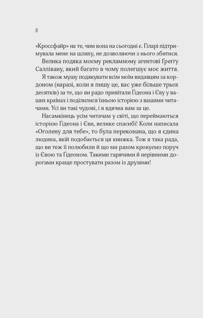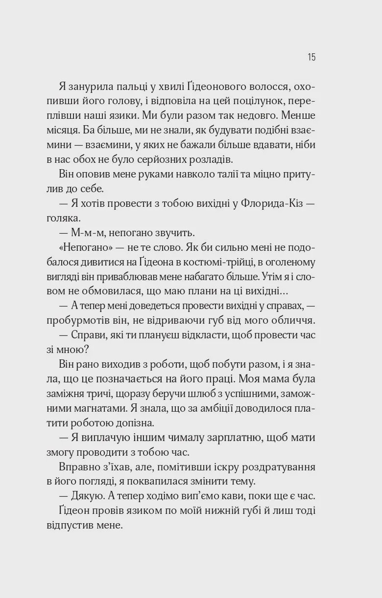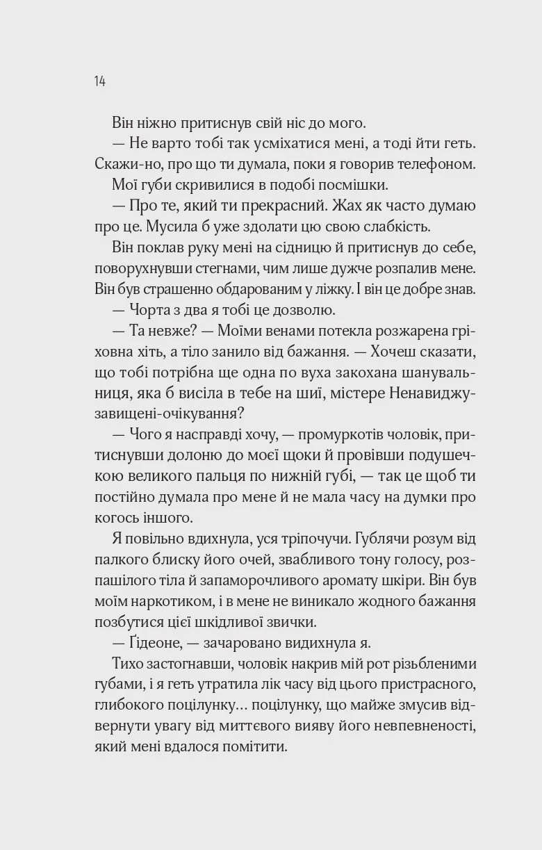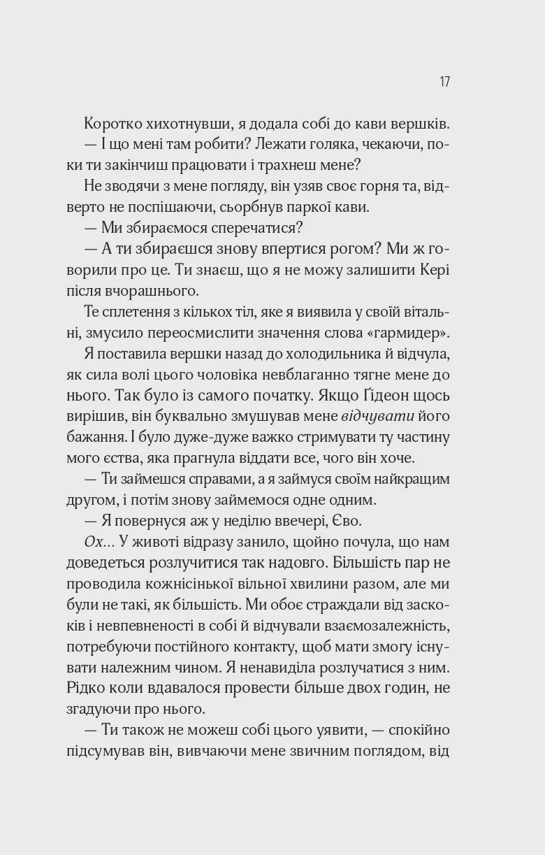 Ця книга про кохання веде стежками історії Єви й Ґідеона, одержимих шаленою пристрастю. У полум’ї ревнощів і напружених суперечок герої гублять себе й відшукують знову, рятуючи серця справжніми почуттями.