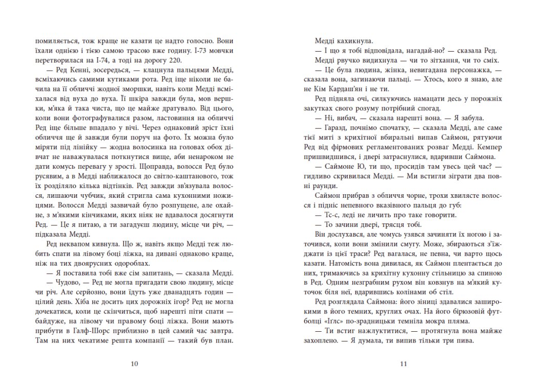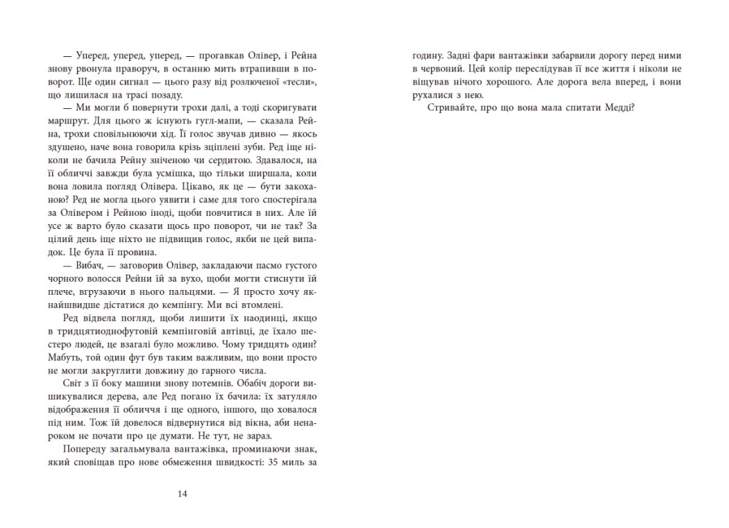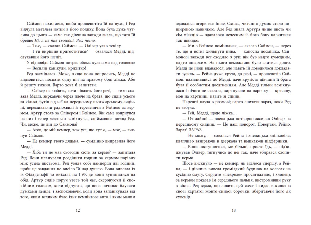 Новий захопливий роман неперевершеної майстрині трилерів! На весняні канікули шестеро друзів вирушають на відпочинок у фургоні, який взяли напрокат. І наче все чудово і весело… хіба що кілька разів випадково звернули не туди… Та коли друзі розуміють, що застрягли десь у глушині без сигналу GPS і мобільного зв’язку, уже не так весело… А коли хтось прострілює їм усі шини та бензобак, стає зрозуміло — це геть не випадковість. Десь назовні в темряві за ними спостерігає убивця. А в когось у цьому фургоні є секрет, що вартує життя…