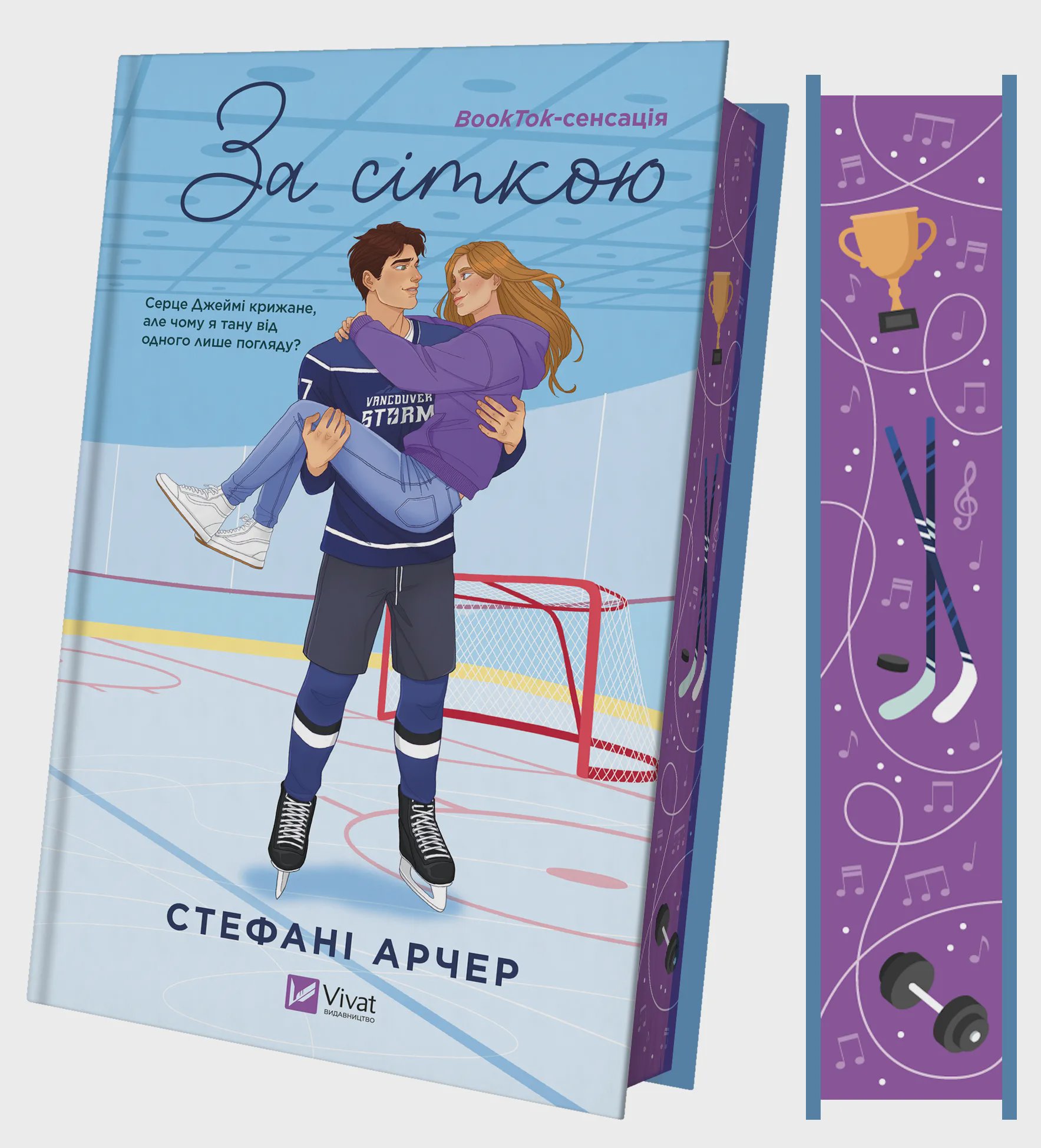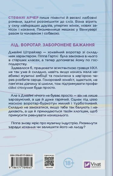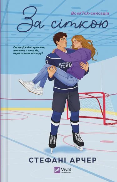 Книга «За сіткою» — це історія в антуражі хокейної романтики від канадської письменниці Стефані Арчер. У головної героїні Піппи Гартлі непрості часи: хлопець грубо обійшовся з нею та покинув, сказавши, що її мріям про кар’єру співачки ніколи не судилося здійснитись. Дівчина намагається рухатися вперед і знаходить роботу. Відтепер вона асистентка Джеймі Штрайхера — зухвалого красеня із жахливим характером, який є новим воротарем команди «Ванкувер Шторм».